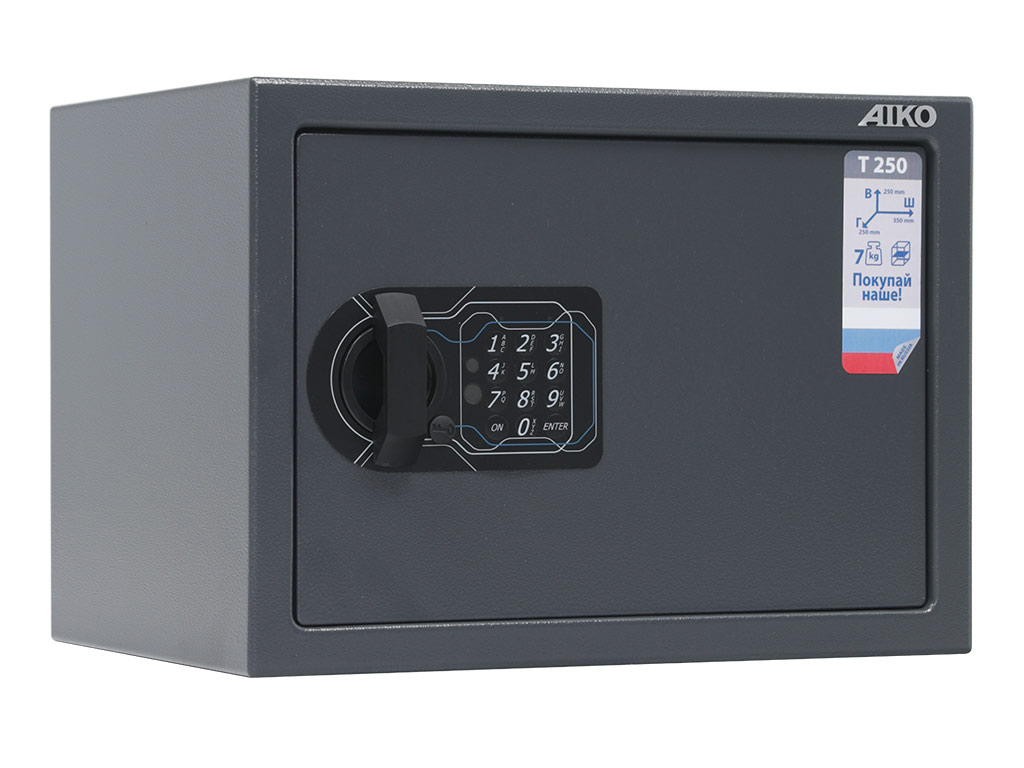 - — Офисный сейф Aiko T-250 EL имеет сертификат соответствия стандартам ГОСТ на начальную устойчивость ко взлому и соответствует требованиям МВД РФ к хранению огнестрельного оружия.