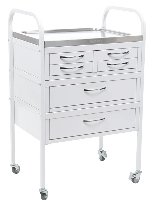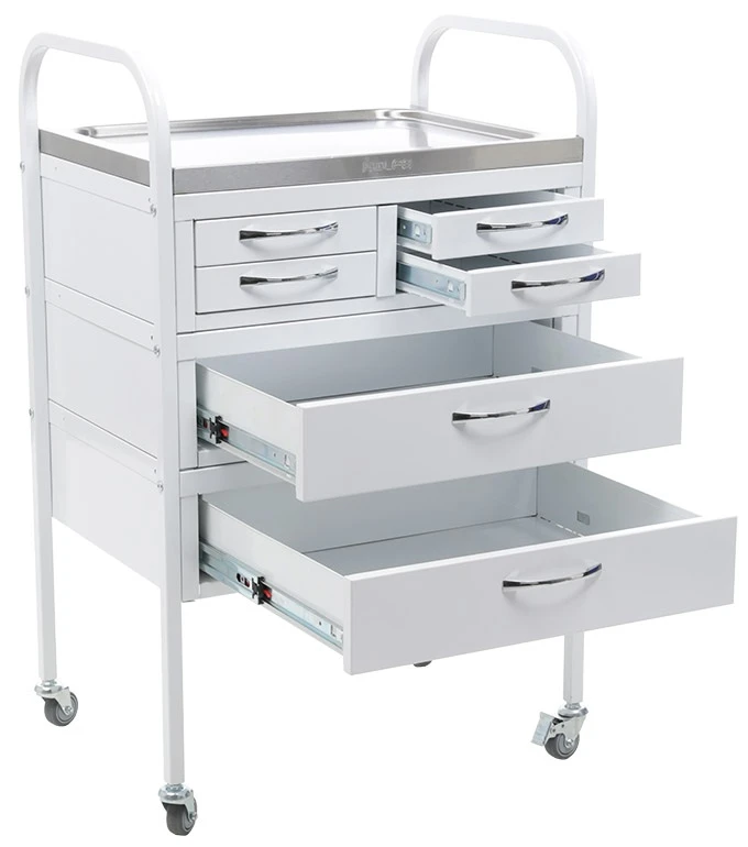 - Полка и выдвижные ящики образуют пять уровней хранения. Выполнены методом «прессовой вытяжки» из высокопрочной нержавеющей стали 1 мм, устойчивой к возникновению трещин и сколов, а также к обработке дезинфицирующими средствами.